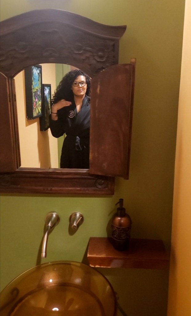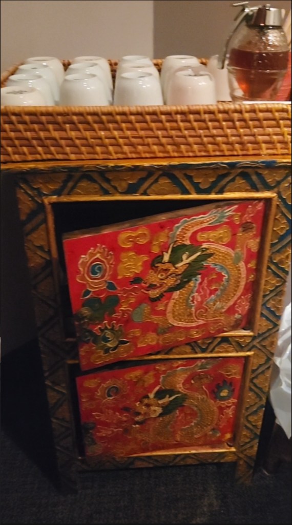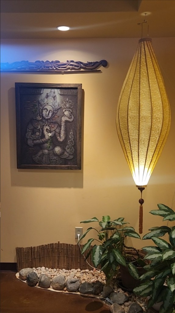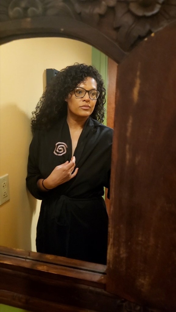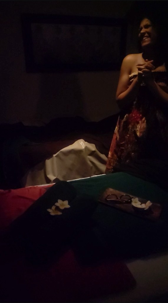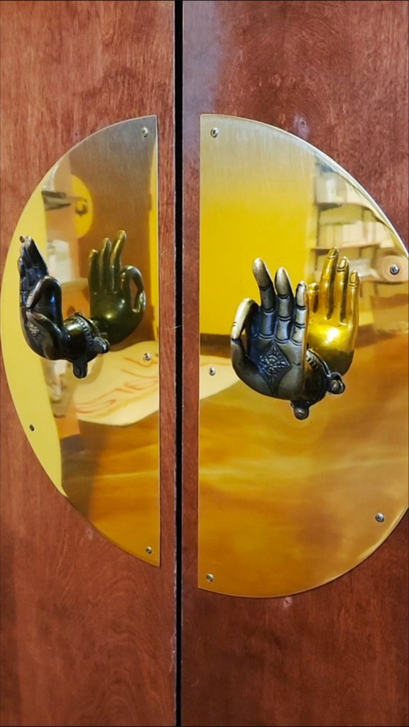 Our treatment space, the “Bali Suite,” was beautifully decorated with curated artifacts from Southeast Asia. I was told every treatment room at Ahlara has a unique theme, and the decor reflects the original owner’s travels across Asia. These personally acquired handmade pieces have since been woven into the fabric of Ahlara, giving the space an authenticity you can feel. This spa isn’t just a styled space, it’s infused with genuine, artisanal pieces that carry story and spirit. One of my favorite small-but-impactful details in the spa was the hand-shaped mudra door pulls which serve as an elegant metaphor for care, touch, and intention.
