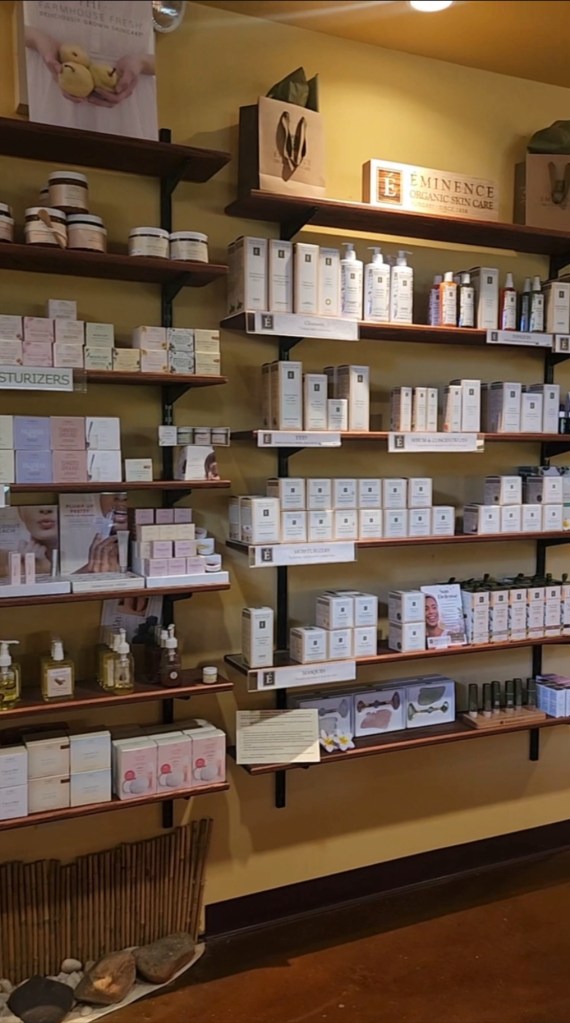 Before my treatment, I gave myself time to explore the on-site boutique and honestly, it was an experience all on its own. The space is full of crystals, organic skincare, fashion, gemstone jewelry, metaphysical tools, and meaningful gifts that feel intentional rather than commercial.