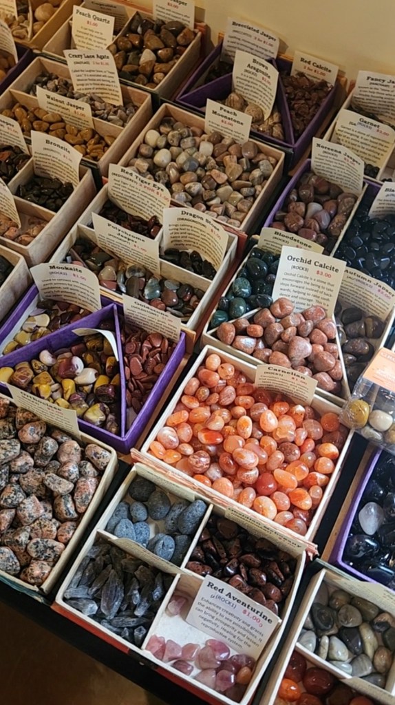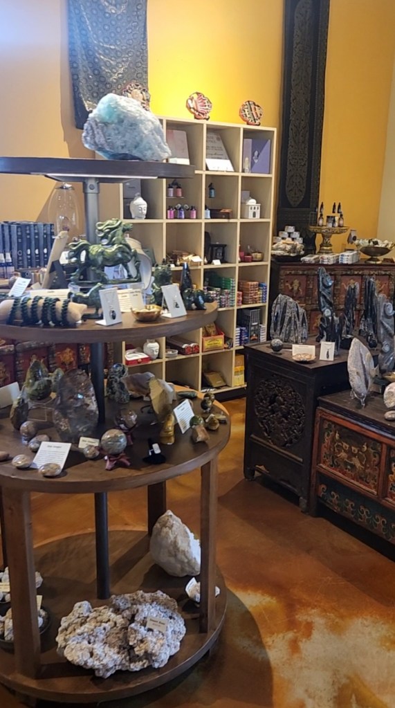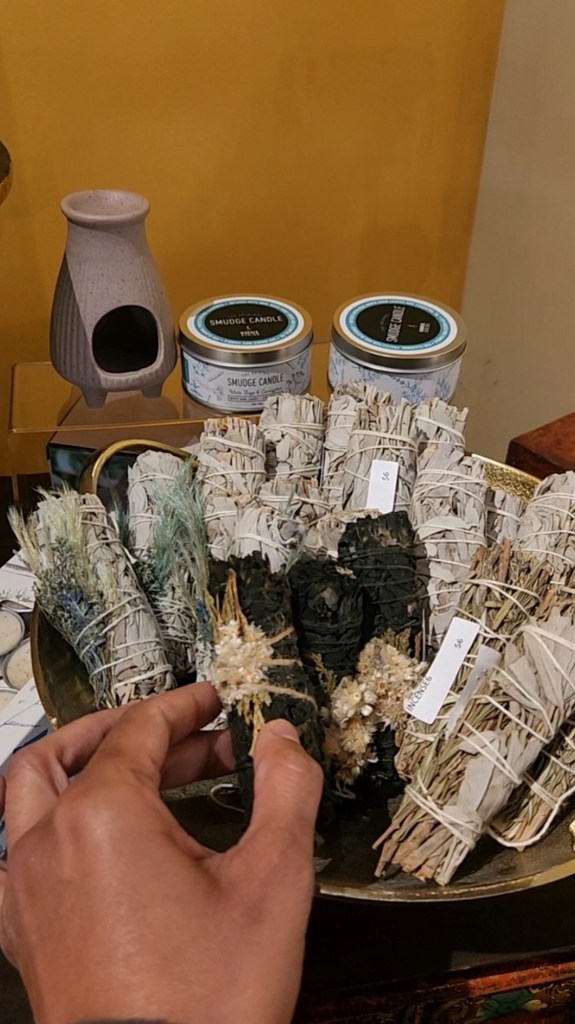 The space was visually rich without being overstimulating, and every item felt intentionally placed. As someone who connects deeply with texture and energy, I appreciated how nicely everything was laid out. I wasn’t rushed. I wandered slowly, touching smooth stones, pausing over incense boxes, and feeling gently guided by intuition; it was the perfect way to slow down and shift into a more grounded state before my service.