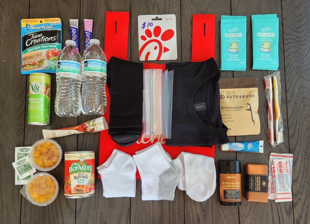 That’s why, in honor of my birthday today, I put together twelve care packages to give to people I encounter who are experiencing homelessness. They’re filled with basics like snacks, toiletries, a few articles of clothing, and water, but more than anything, I hope they carry a little bit of dignity and humanity. Because homeless people are still people. Oftentimes it is circumstances and not character that lead people to these places in life.