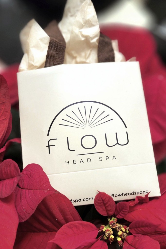 To celebrate the holiday season this year, Flow Head Spa offered a special gift with the purchase of a gift card: a physical gift card and a silicone head massager presented in a lovely gift bag. I enjoyed this detail, as I got to give myself a little taste of the treatment ahead of time with one of the actual tools they use in-service. I went to pick up my gift about a week before my scheduled appointment (again, I take any opportunity I can to familiarize myself ahead of time), and I thought this was a really nice touch.